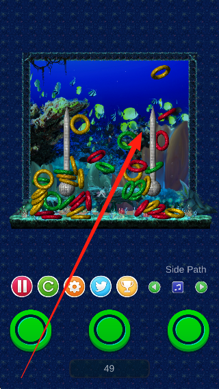 2、瞄准套圈练技巧:瞄准画面中的立柱,控制水压让圆圈缓慢靠近,在圆圈对齐立柱时减小水压,让其平稳落下套入,多尝试找到力度控制的平衡点。