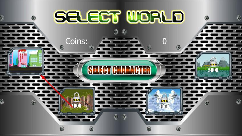 1、进入界面,选择不同的场景,部分场景可能需要达到一定金币数量才能解锁,点击SELECT CHARACTER按钮,选择自己喜欢的托马斯小火车角色。