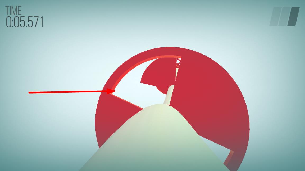 1、视角沿水管极速前进时,观察前方旋转的障碍,通过点击屏幕左右两侧控制障碍旋转,尝试让其呈现空心开口状态,完成初期简单关卡以适应节奏。
