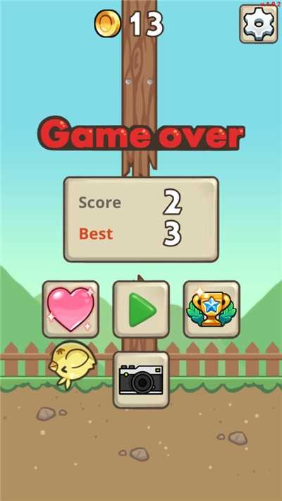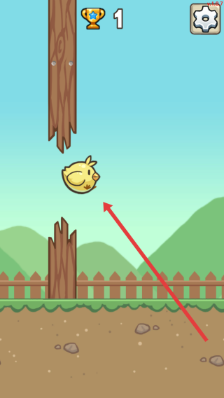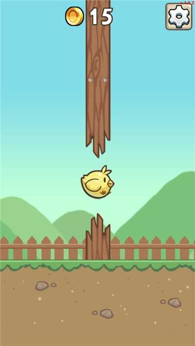 1、跳跃闯关避障:点击屏幕控制小鸡飞行高度,需要合理预测飞行轨迹,在撞上木头柱前从缝隙中低空飞过去,持续穿越通道推进关卡,碰撞则游玩失败。