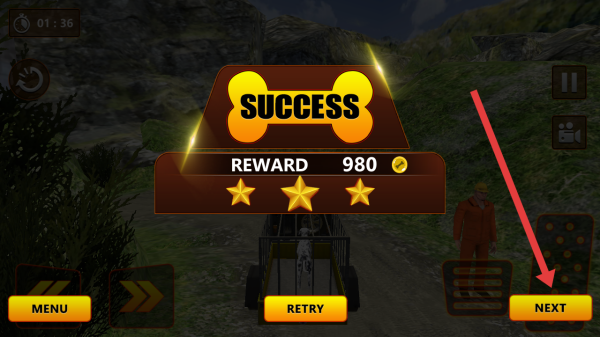 3、在完美运输通关后,点击NEXT的按钮,顺利的开启下一关,还可以获取980的金币奖励。