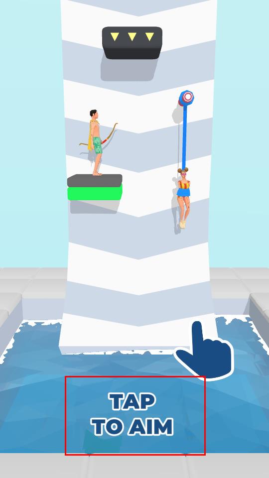 1、看到TAP TO AIM提示区域,触发瞄准模式,正式开启充满挑战的救援流程,此时画面聚焦射箭场景,人物、绳索与目标清晰呈现,营造紧张救援氛围。
