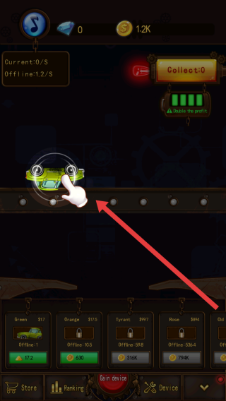 3、解锁绿色车辆后,点击车辆后开始不断生成绿色车辆,为后续粉碎操作做准备,继续游戏进程。