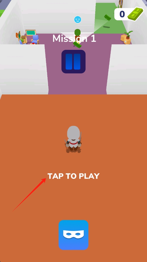 1、游戏开始时,点击TAPTOPLAY进入游戏,在关卡场景中开始潜行冒险,点击按钮进入游戏。