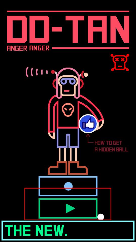 1、看到DD-TAN主题界面,点击下方带有播放图标的按钮,正式开启充满趣味与挑战的弹球冒险之旅,查看角色HOW TO GET A HIDDEN BALL等元素。