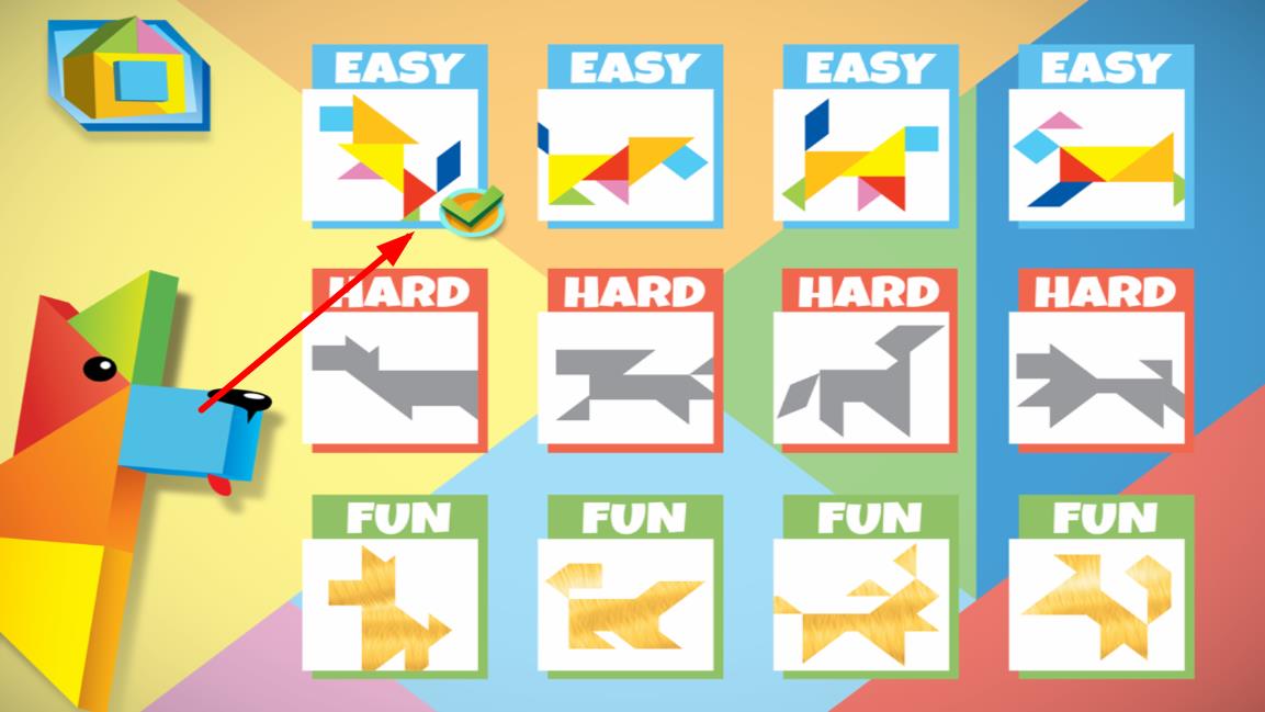 2、可爱卡通的视觉风格:采用卡通风格画面,色彩明快、形象讨喜的狗狗图案和七巧板设计,能瞬间吸引孩子的注意力,营造出轻松愉悦氛围,让孩子更愿意投入其中。