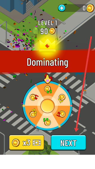 3、成功击败敌方后在结算界面中,可以通过点击蓝色NEXT按钮,进入下一关继续游戏进程。