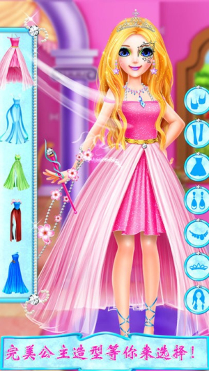 3、游戏提供超过50种精美发饰和配饰素材,玩家可自由组合搭配,打造独具匠心的公主造型,极大提升游戏趣味性。