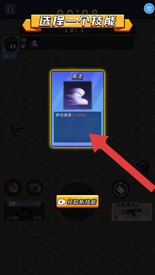 3、显示选择一个技能,当前可选择技能为疾走,效果是移动速度+24%,玩家点击该技能卡可学习疾走技能,助力战斗。