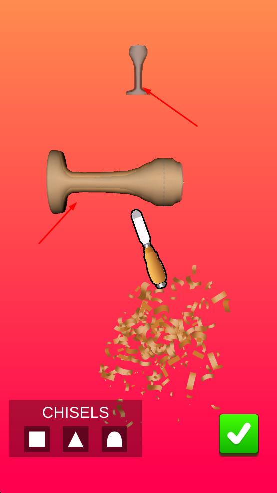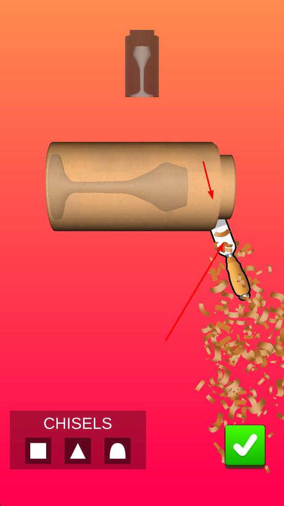 2、通过点击或滑动屏幕选择不同形状的凿子,如方形、三角形、半圆形等,然后在木材上进行雕刻操作,雕刻过程中会产生木屑。