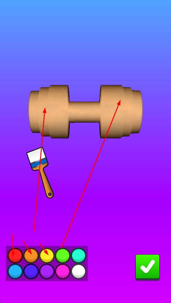 3、玩家可以使用画笔和下方的彩色颜料对雕刻好的物品进行上色,有多种颜色可供选择,上色完成后点击绿色的对勾按钮完成该物品的制作。