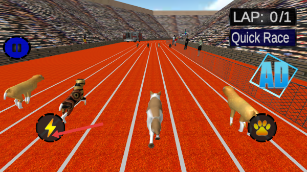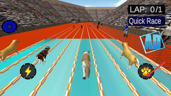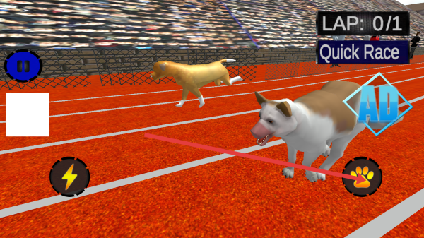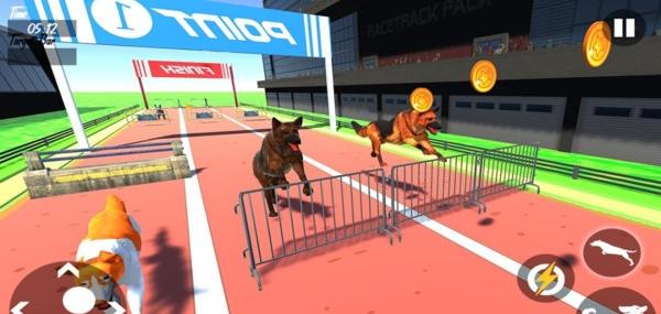 3、虚拟按键轻松操控:通过超级容易理解的虚拟按键设置,玩家能迅速上手操作,控制狗狗加速、转向、跳跃,在流畅操控中享受赛跑乐趣。