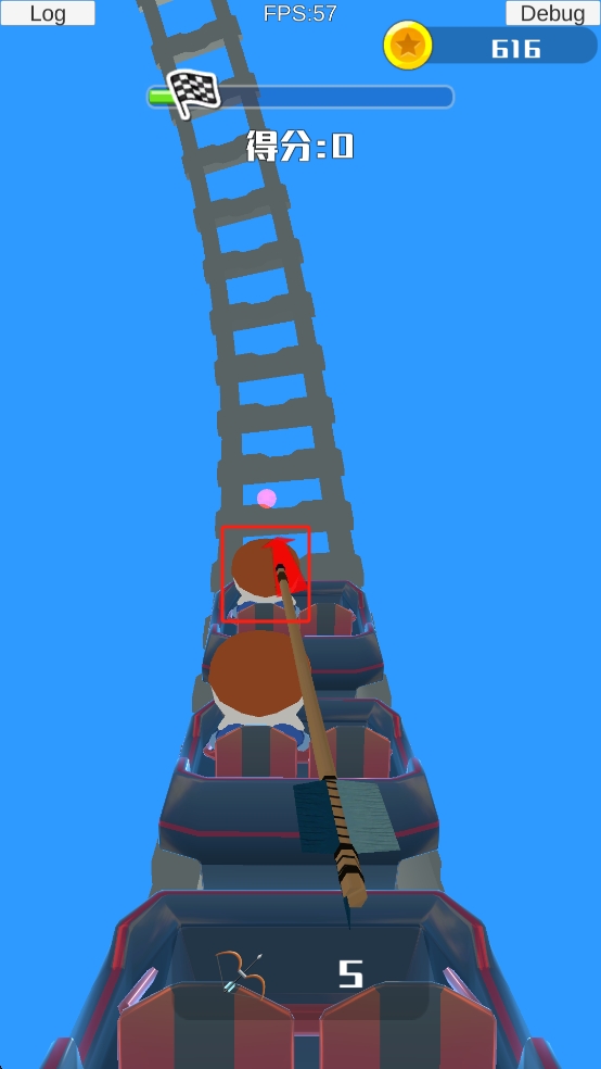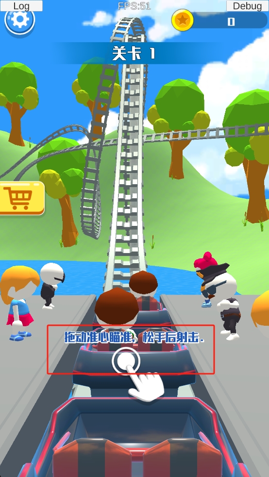 1、关卡1开始时按提示拖动准心瞄准,调整角度与力度,松手发射箭矢,利用过山车轨道行进时机,精准射击目标。