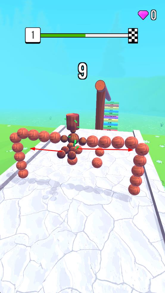 2、角色移动时可以收集道路上的棕色球体,使自身变得更长更大,同时要注意躲避障碍物。