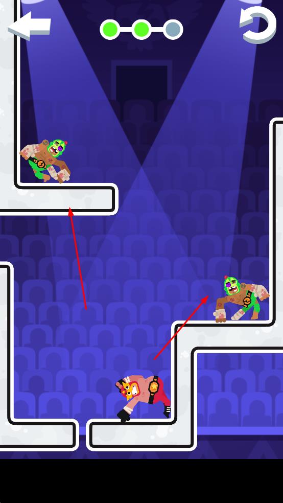 2、,通过点击或滑动屏幕来控制摔跤手的移动和攻击,摔跤手可以发射攻击波攻击对手。