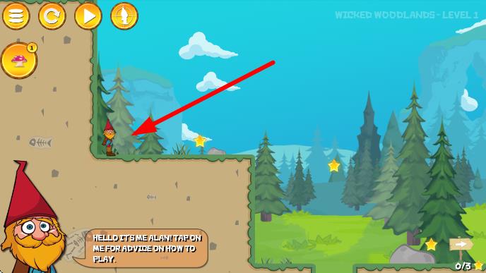 1、进入界面后,操控地精站在第一关起点,眼前是布满星星的草地,准备开启闯关。