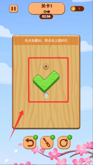 1、核心规则围绕拆装螺丝展开,点击屏幕拾取螺丝钉,将其拖拽至对应孔位即可解除木板固定,最终清空所有障碍。