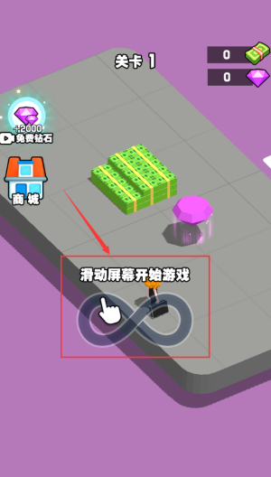 2、按照红框滑动屏幕提示,控制角色开始跑酷游戏。