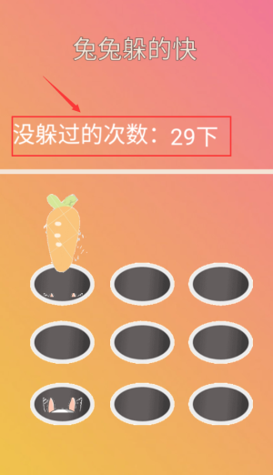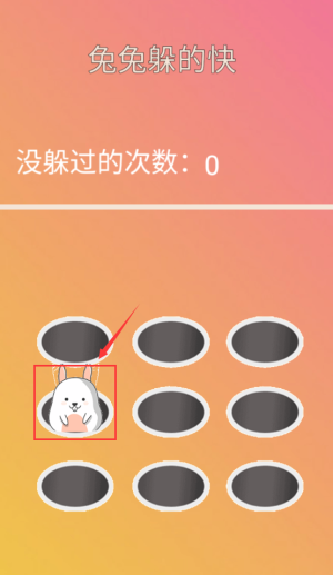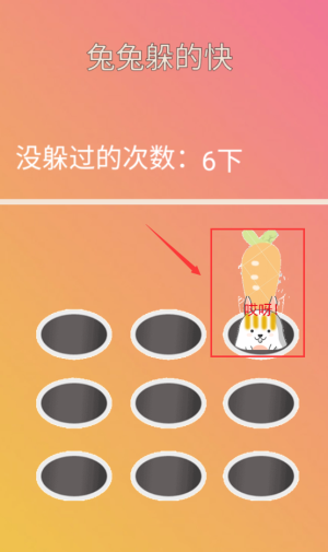2、观察红框兔子洞口,点击出现的兔子得分。