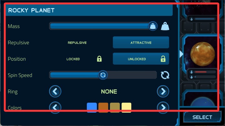 2、通过直观易懂的操作界面,结合物体质量、初速度、飞行角度等参数调整,玩家可以自由设计出千变万化的星系模型。