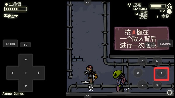 4、遇到敌人时在其背后按a键可以进行一次暗杀。