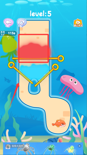 1、进入关卡后先观察管道布局,优先夹掉阻碍道路的部件,为小金鱼清理出安全路径快速前进。