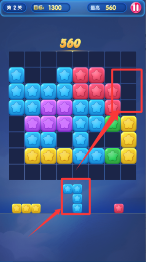 2、优先完成边缘和底部的填充,尽量保持整体结构平整,为后续方块留下更多调整空间提高消除频率。