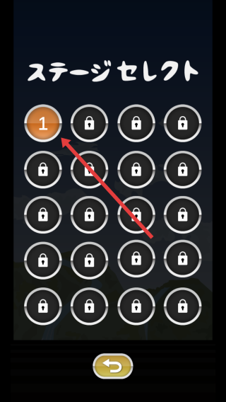 2、在ステージセレクト界面处,可以点击选择标有1的关卡,随即开启游戏的第一关挑战。