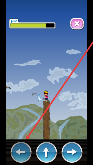 3、进入关卡后,按照指示通过点击下方左右箭头与向上按钮,操控角色在木桩上挥刀,应对迎来的危险。