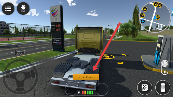 3、需要将卡车停入加油站黄色区域,点击BUY FUEL的按钮,为车辆补充燃料,保障续航。