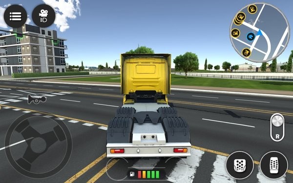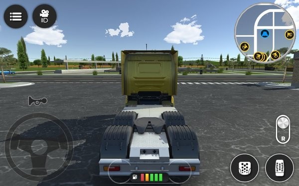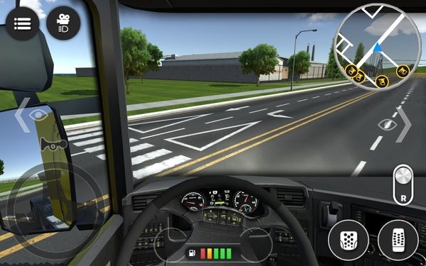 1、开局可以参照右边的地图指引,操控卡车沿着道路行驶,熟悉一下方向盘、挡位等操作。