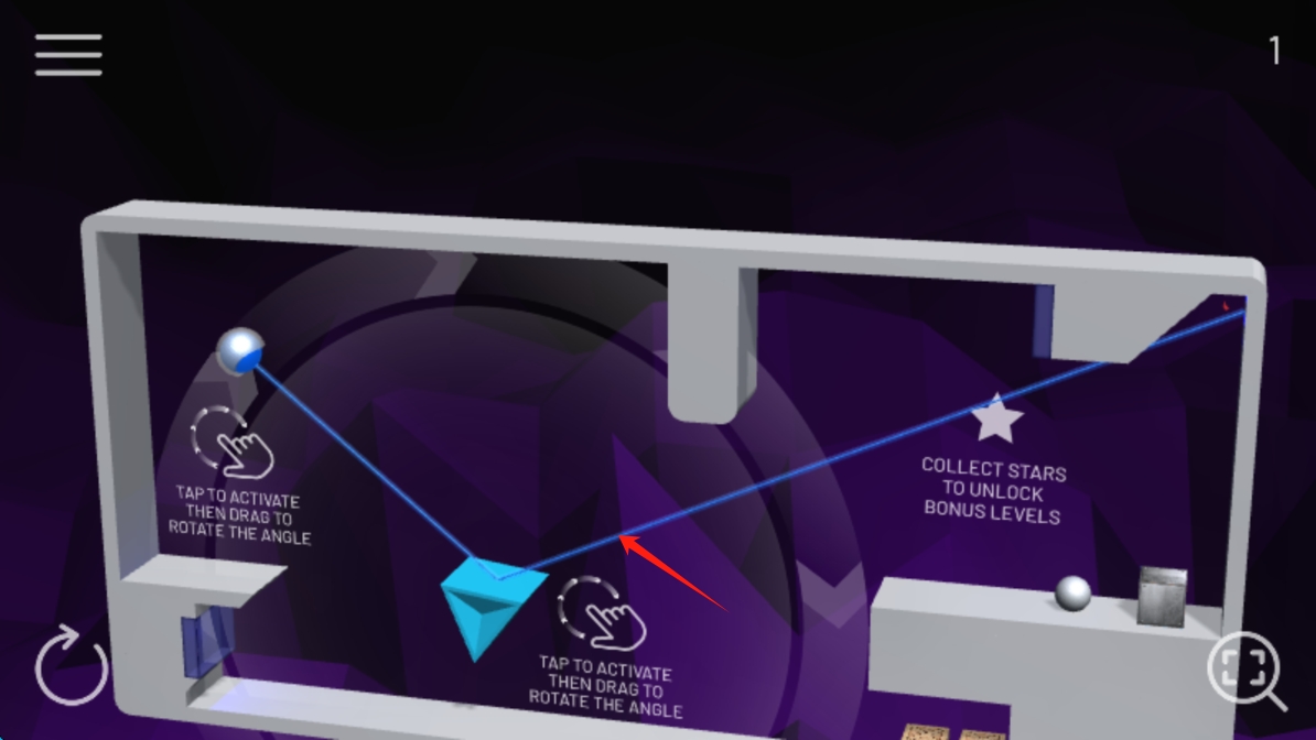 1、点击激活机关,拖动调整角度,让激光按规划路径反射,收集星星解锁奖励关卡,点击调整位置。