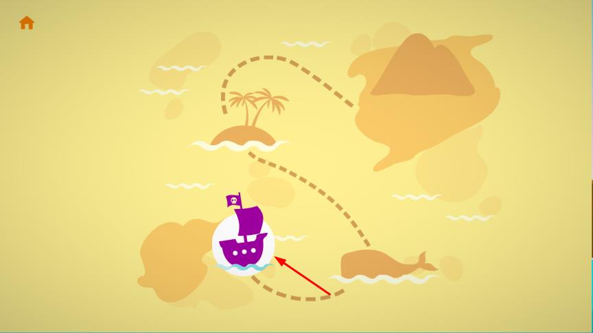 1、进入界面,从木桶里找到海盗,展示一张带有航线等元素的地图,地图上有一个紫色海盗船标识,点击该标识,开始游戏。