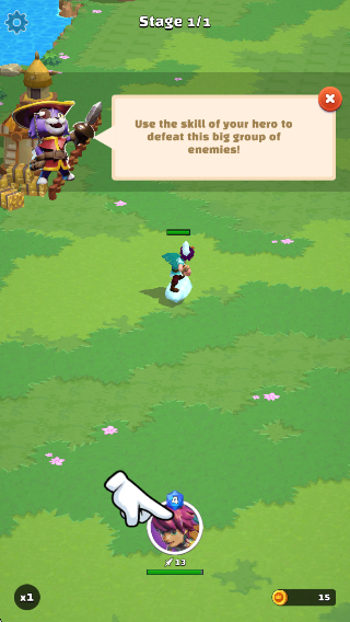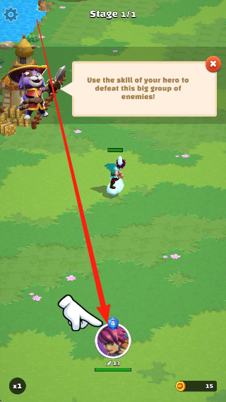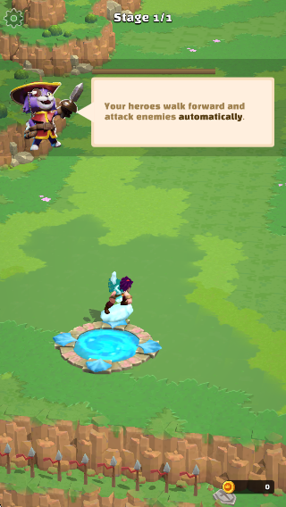 1、进入卡通风格场景,了解英雄招募的基础方式,尝试招募第一位英雄,开启闯关之旅。