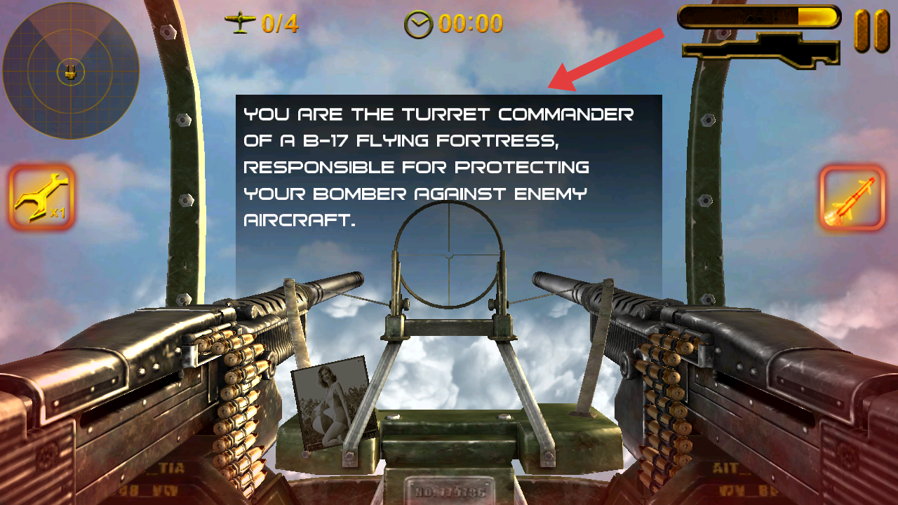1、开局查看背景故事作为B-17飞行堡垒的炮塔指挥官,需肩负保护轰炸机、抵御敌方战机的任务。