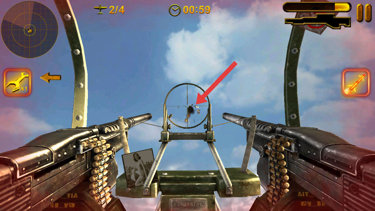 3、通过瞄准镜来锁定敌机,逐步达成击毁4架敌机的目标如进度从0/4到2/4,还差两架。