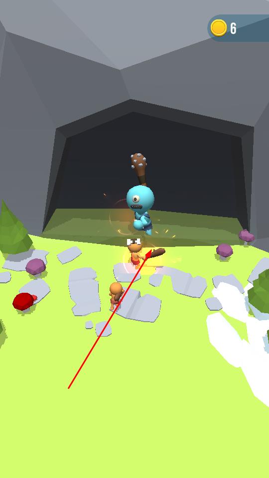 2、操控角色灵活移动,遭遇手持巨棒的蓝色怪物时,精准点击屏幕发动攻击,配合队友若有协作战斗,稳步推进游戏进程,为通关目标积累战果。