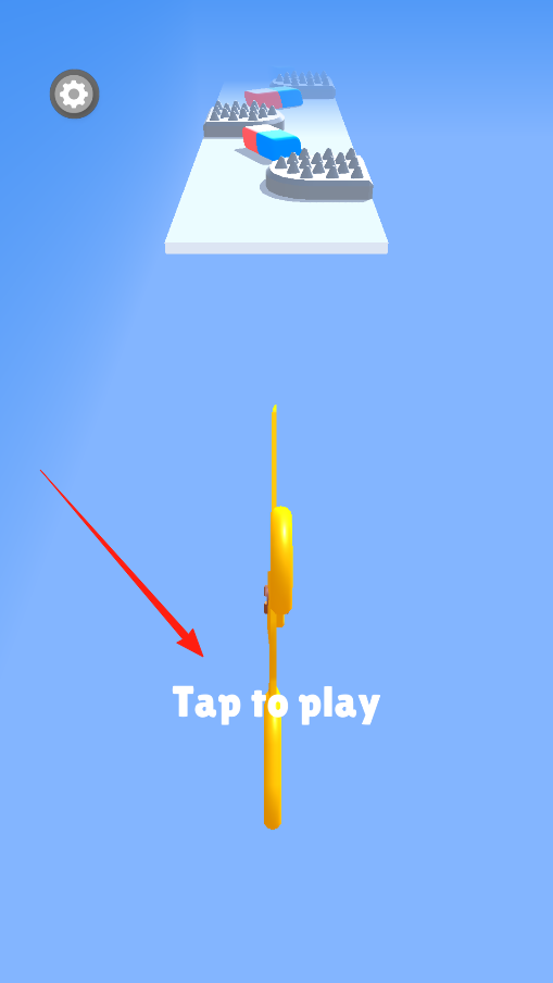 1、点击Tap to play启动游戏,剪刀开始移动,在路径上躲避障碍,向终点前进,体验开局触发机制。