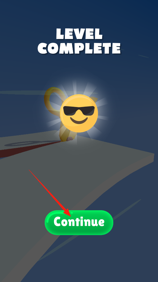 3、完成关卡,点击Continue进入下一关,面对新路径布局,重复移动躲避流程,体验关卡推进机制。