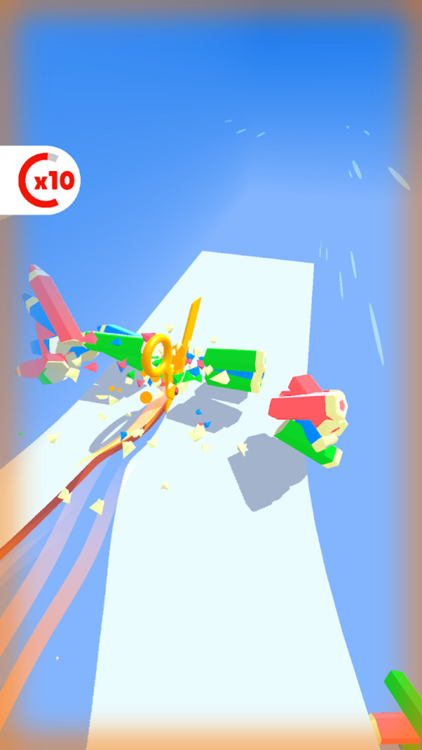 2、3D画面精致呈现:采用3D建模打造画面,赛道、障碍、剪刀等元素都十分精致,剪裁时的动态效果清晰可见,3D画面增强了场景的立体感,提升整体游玩体验。