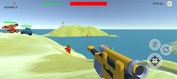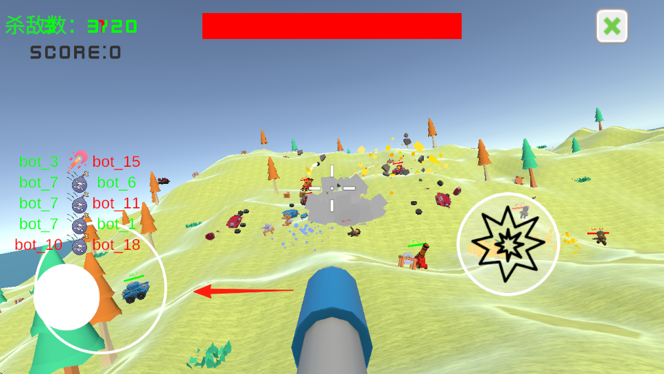 2、用左侧摇杆移动瞄准,右侧按钮射击,优先攻击扎堆敌人如bot集群。