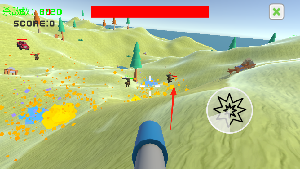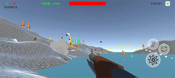 3、击杀敌人积累杀敌数,躲避反击,存活到战场清理完毕,解锁新武器、关卡。