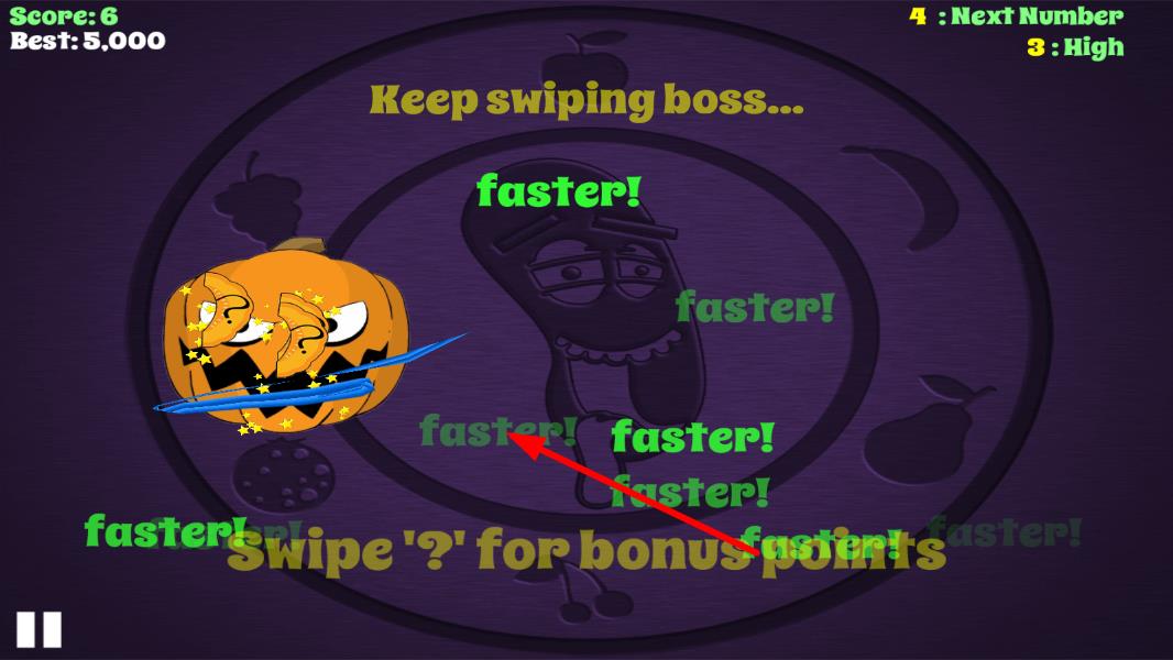 1、选择游戏模式,通过滑动屏幕切割出现的水果角色,熟悉不同水果的出现节奏,完成基础切割操作。
