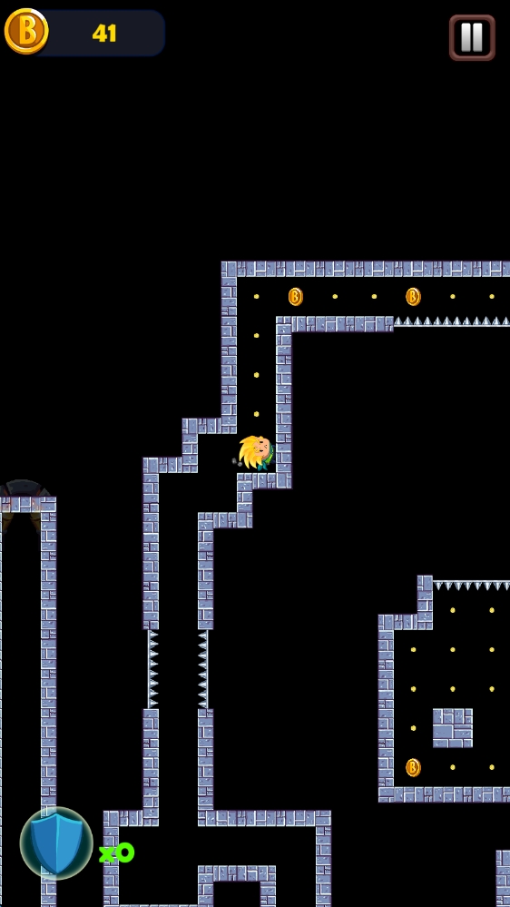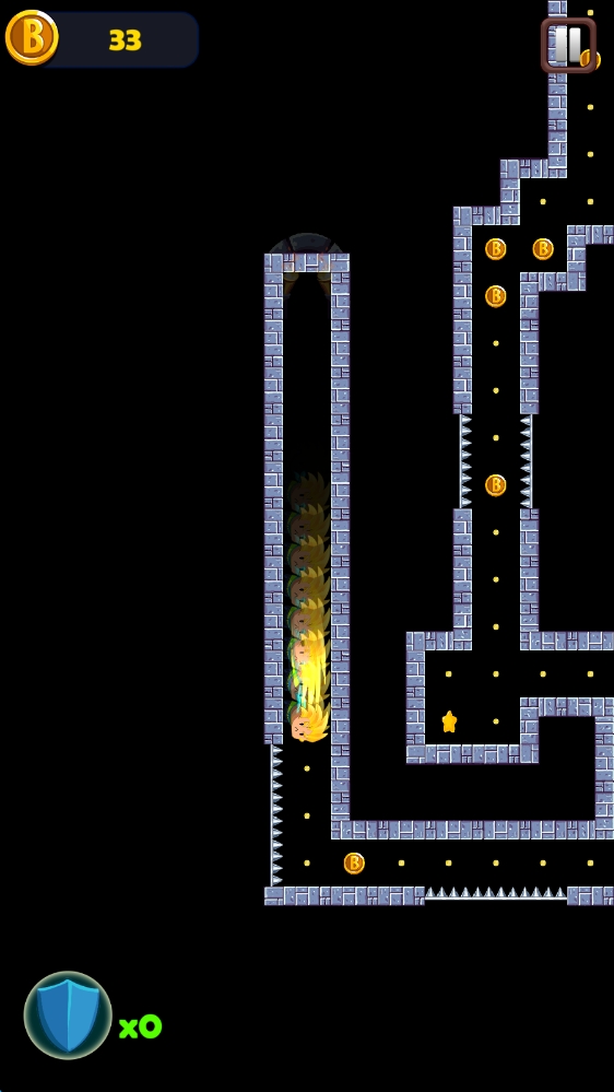 2、继续在迷宫中探索,尽可能收集所有金币,留意护盾道具,应对可能的危险,点击使用道具。