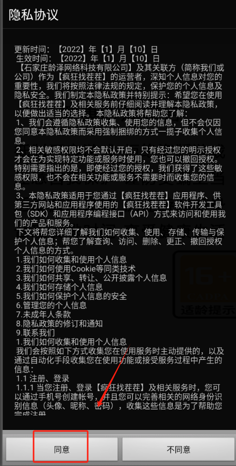 1、点击隐私协议红色框框的同意并进入。