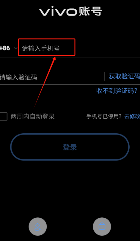 2、点击输入手机号码获取验证码。