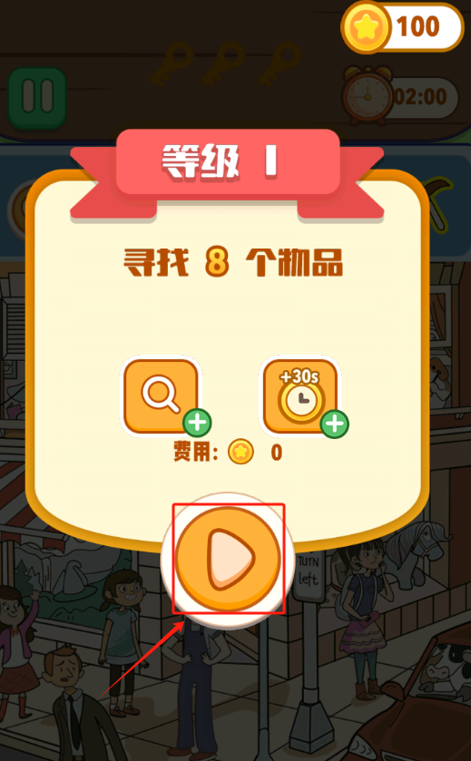 4、在图中找出8个物品,点击红色框框的开始。