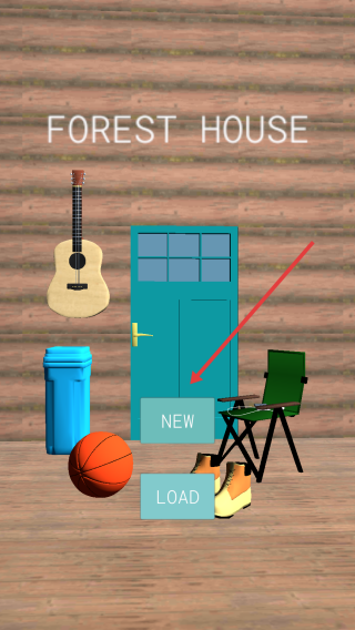 1、主界面点击NEW,开启森林小屋冒险,进入后观察窗外油桶,记录两组数字,作为后续解谜关键线索。