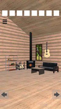2、操控视角在木屋内探索,留意吉他、桌椅等物品,互动尝试收集道具,结合窗外数字,寻找可破解的机关、门锁或暗格。