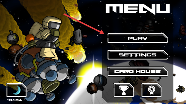 1、主界面点击PLAY,进入像素科幻关卡,操控宇航员角色,开启太空冒险挑战流程。